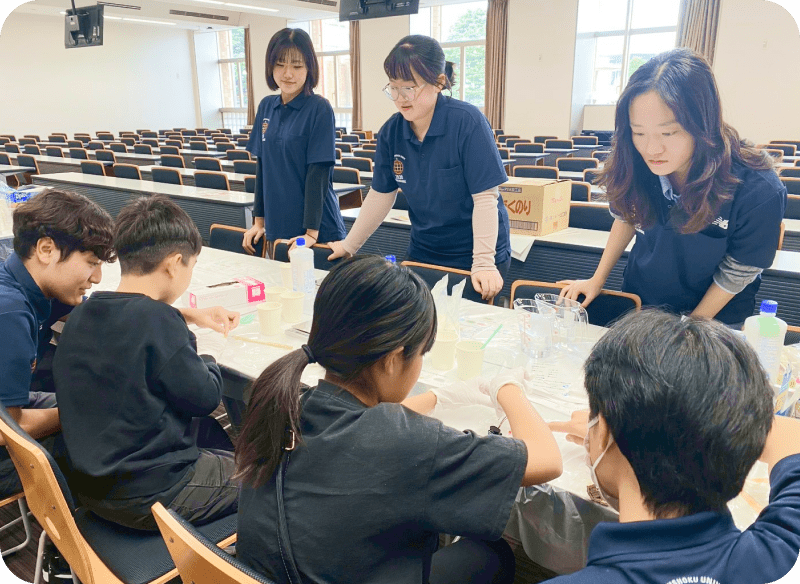 八王子市や大学のイベントなどで、教職員と学生が企画した体験型の理科教室を実施しています。ドローン操縦体験や電気スライムづくり、空気砲体験など、子どもたちが楽しみながら科学に触れられるプログラムを提供しています。