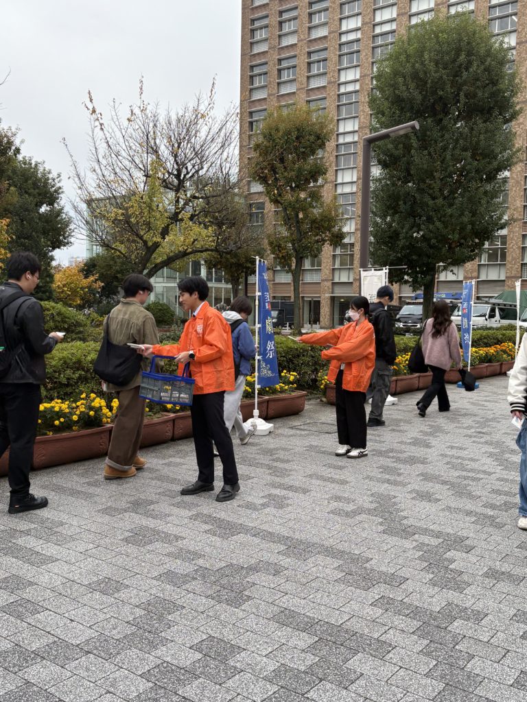 Link Bunkyoの職員も参加し、計300個の啓発品(メッセージカード入りティッシュ、メッセージ入りシャープペン)が学生の手に渡りました。